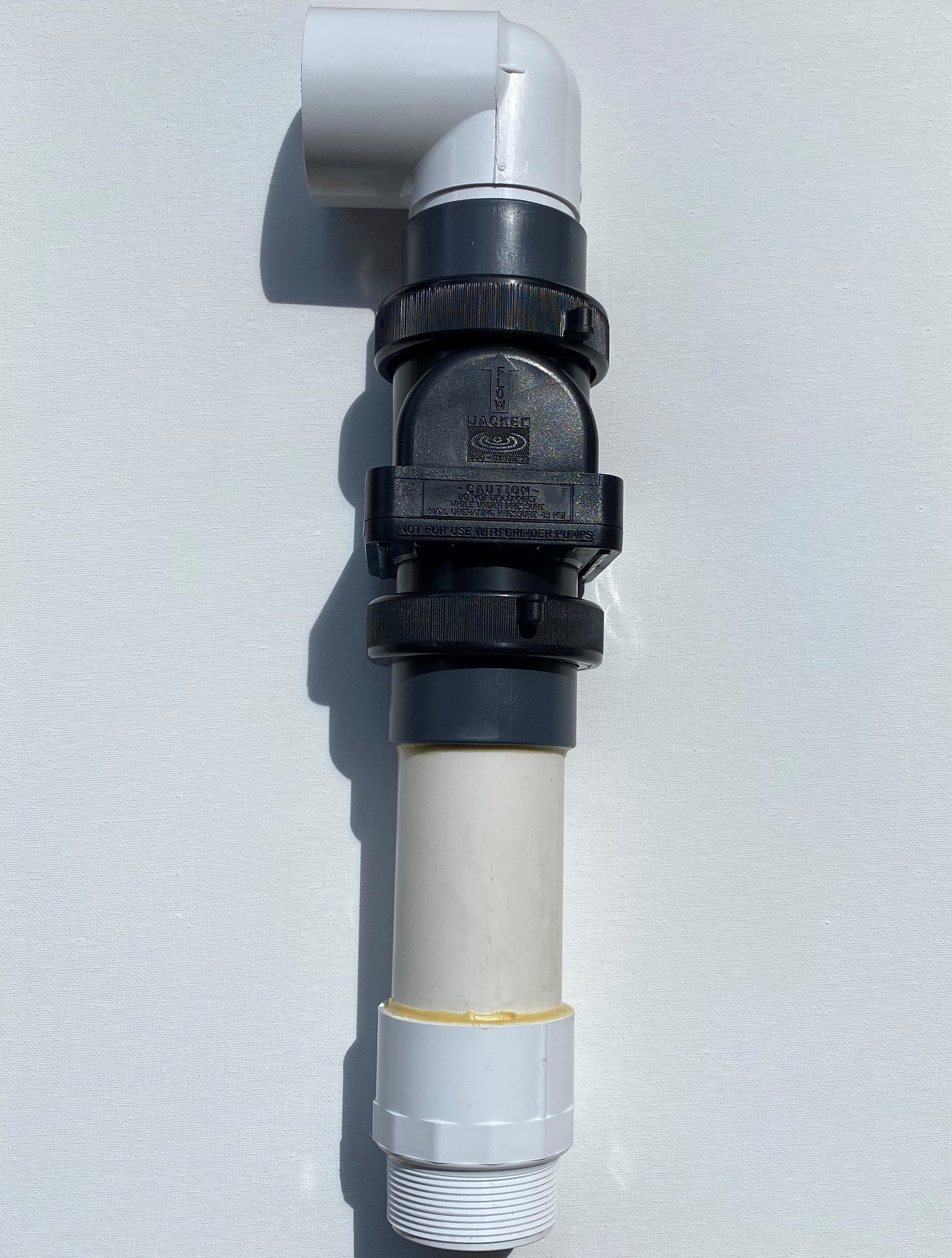 This 2" discharge kit comes equipped with a Dual Union Check Valve for easy Maintenance and pump winterization. Intended to be glued to 2" PVC coming out of the skimmer