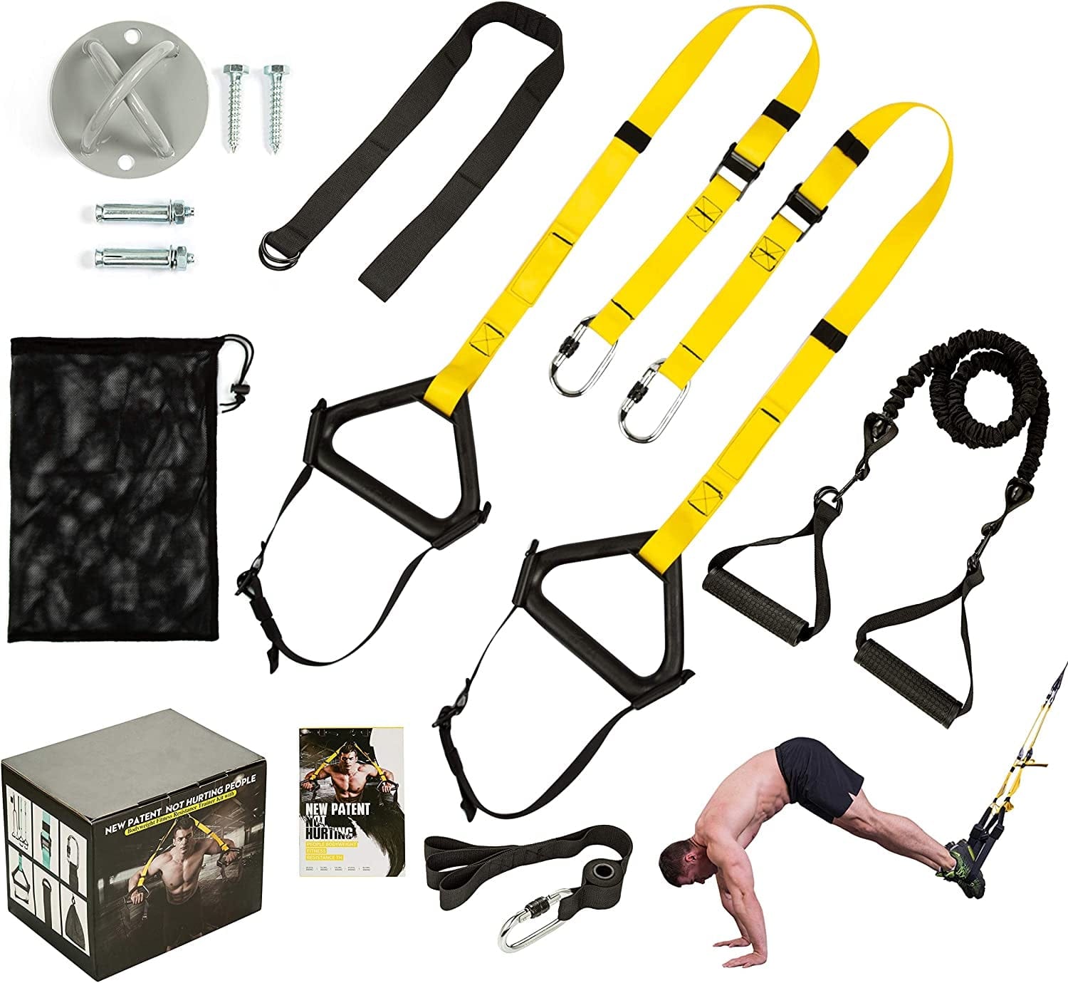 - SET INCLUDED: 2 x Adjustable Resistance Training Straps, 1 x Door Anchor, 1 x Wall Mount,1 x Elastic Resistance Band,1 x Extension Strap,1 x Drawstring Travel Bag,1 x Exercise Book & Get Started Guide