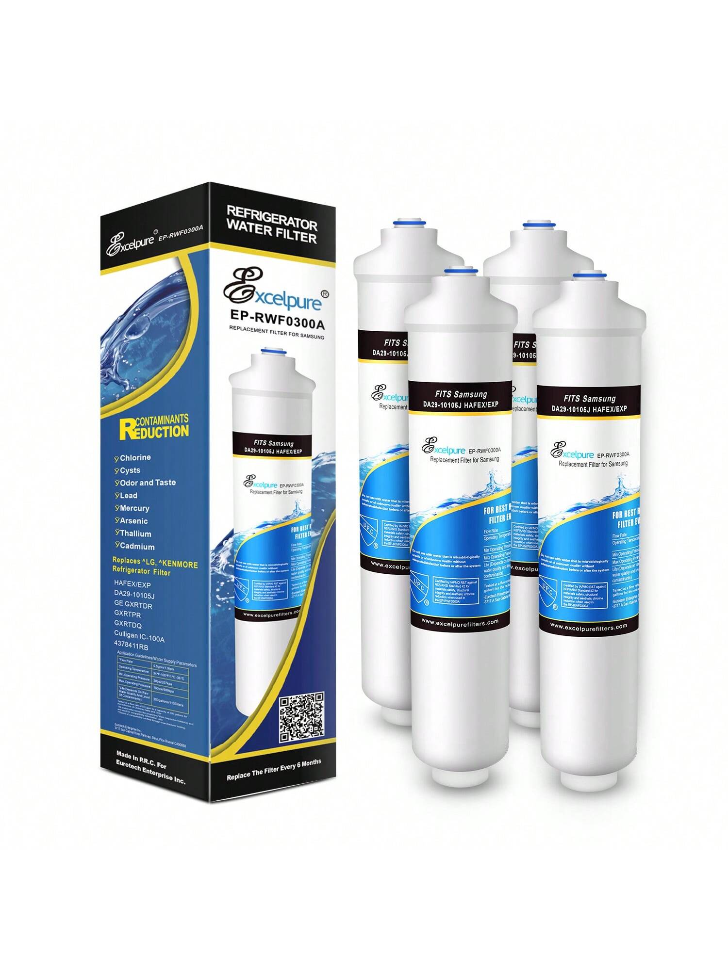 The EXCELPURE GXRTDR Inline Water Filter Replacement is a must-have for your GE GXRTQR, GXRTDQ, 4378411RB, Samsung HAFEX/EXP, DA29-10105J, WHKF-IMTO, IC-100A refrigerator, icemaker, RVs, and Marines. With its sleek white design and durable PP material construction, this 4PACK water filter replacement ensures clean and fresh-tasting water every time. Say goodbye to the hassle of power supply or batteries as this inline water filter operates without any. It is specifically designed to remove impurities and contaminants from your water supply effectively. Enjoy the convenience of having a reliable water filtration system that requires no additional maintenance. Installing the EXCELPURE GXRTDR Inline Water Filter Replacement is quick and easy. Simply connect it to your existing water line for instant access to purified water. No need to worry about frequent replacements as each pack contains four filters that will last you a long time. Experience peace of mind knowing that you are providing your family with safe drinking water while also extending the lifespan of your appliances. Upgrade your filtration system today with the EXCELPURE GXRTDR Inline Water Filter Replacement and enjoy pure refreshment at your fingertips.