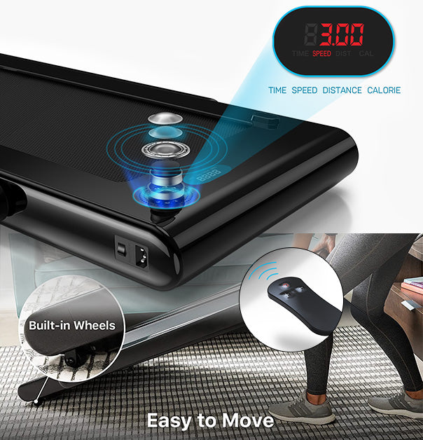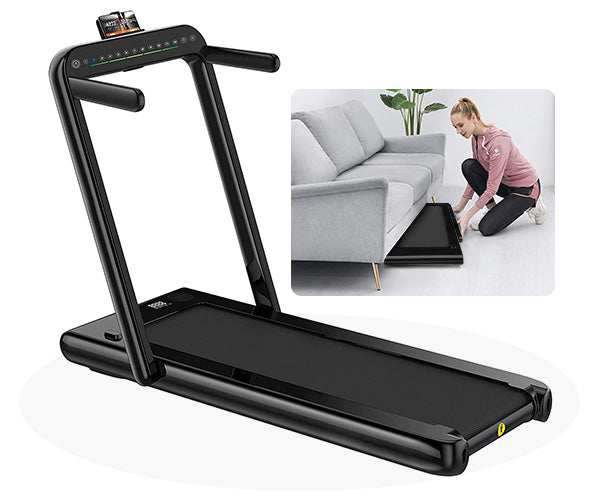 This running machine can be easily folded up for space-saving storage. When it is folded, the thickness is 5inch and you can store it under the sofa, TV stand or bed. With the compact design, it is perfect for apartment or room with limited space.