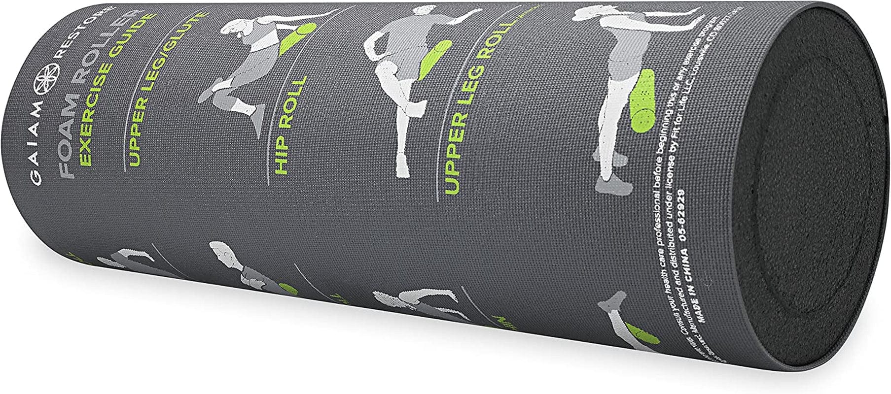 Gaiam Restore Foam Roller with Self-Guided Exercise Illustrations Printed on Massage Roller, 18 Inch
