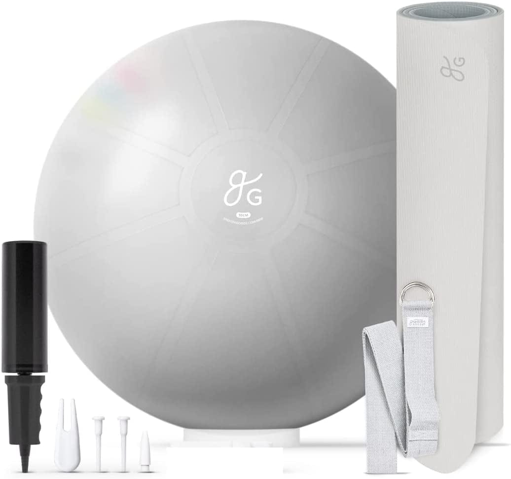 Greater Goods Exercise Ball and Yoga Mat - 65 Cm Yoga Ball for Working Out, Balance, Stability, and Pregnancy | Exercise Mat for Fitness, Balance, and Stability | Free Carrying Strap (Pebble Gray)