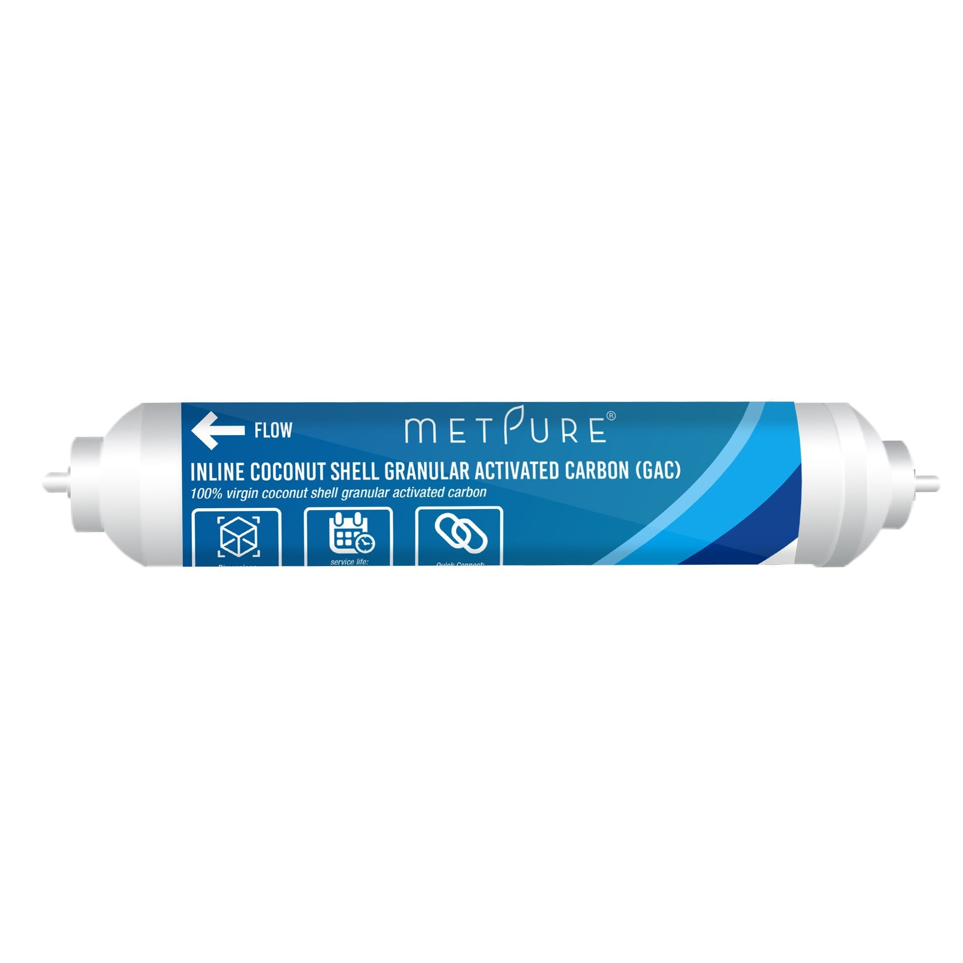 Metpure Inline Water Filter for Refrigerator 2" x 10" x 1/4" OD Quick Connect Ports Coconut Shell Post Activated Carbon Water Filter Replacement Cartridge for Inline Reverse Osmosis RO Water Filtration System, Ice Maker