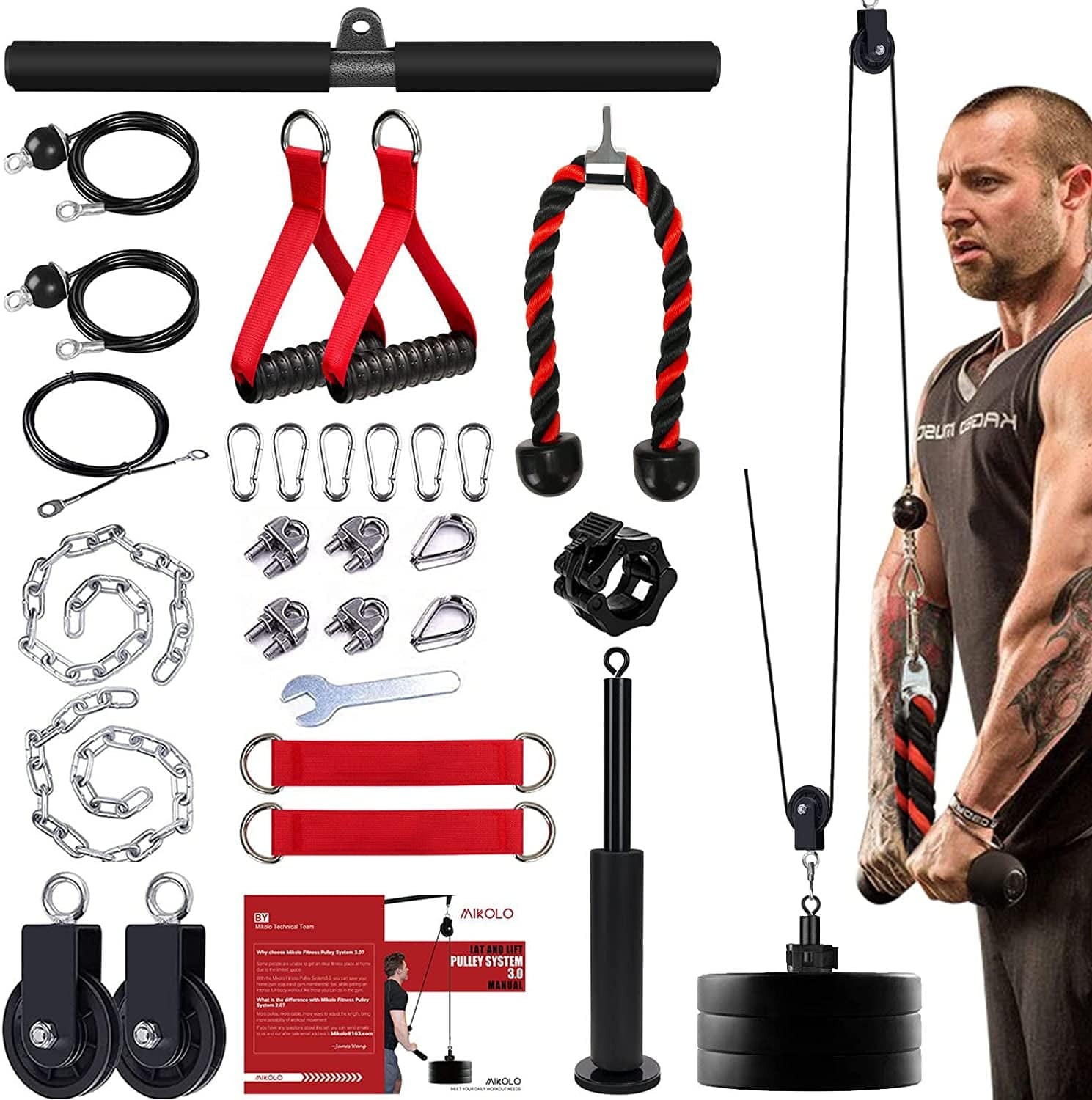 Mikolo LAT and Lift Pulley System, Upgraded Weight Cable Pulley System with Adjustable Length Cable for Biceps Curl, Triceps Pull Down,Back, Forearm, Shoulder,Fitness Home Gym Equipment
