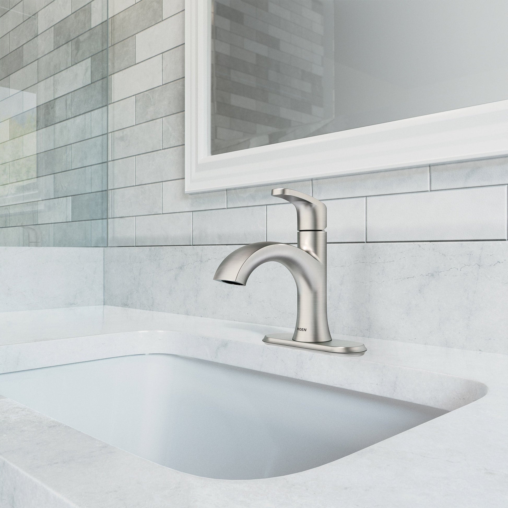 - Moen’s exclusive Spot Resist™ Brushed Nickel finish, which resists fingerprints and water spots to maintain the fixture’s brilliance and minimize cleaning time
